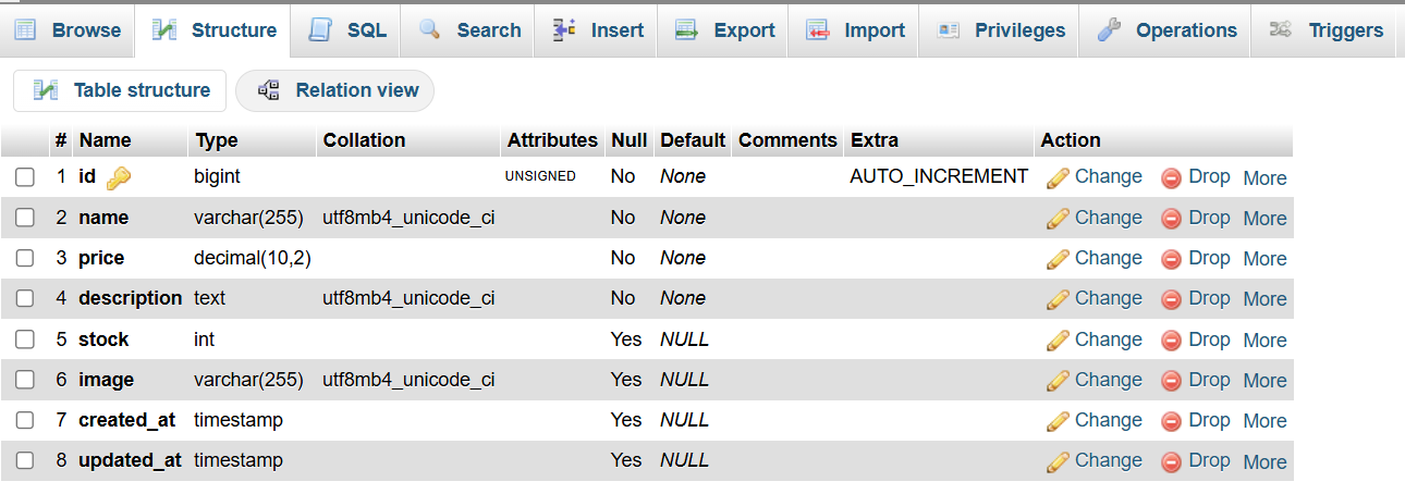 - Menjalankan perintah migration untuk membuat struktur tabel.