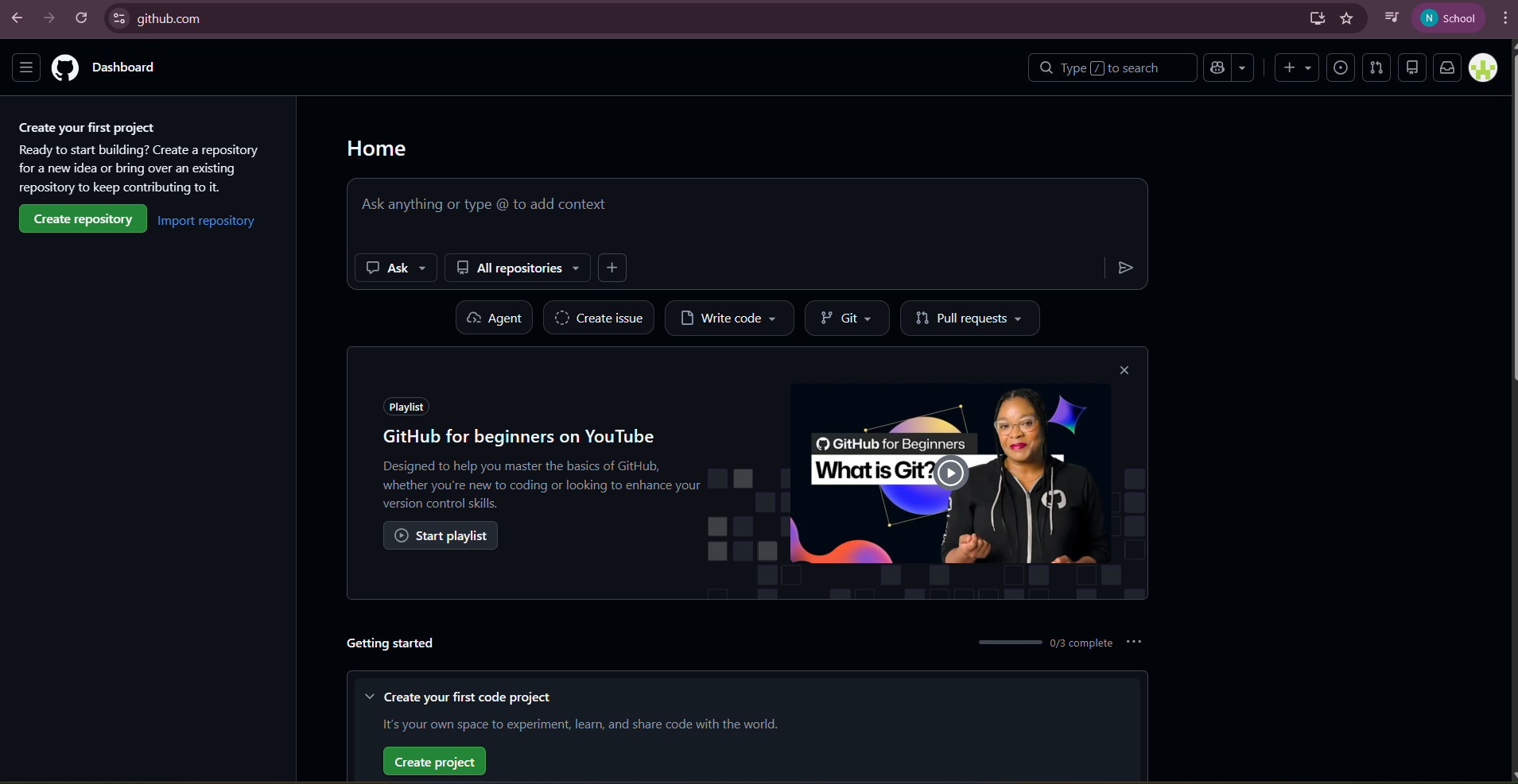 - Klik ikon "+" di pojok kanan atas, pilih New repository.